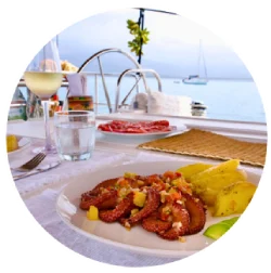 Full-board gourmet meals prepared daily with fresh local ingredients.